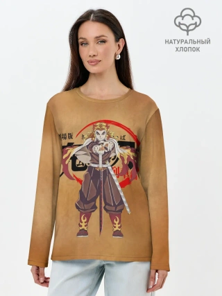 Лонгслив женский. Хлопок / Кёджуро Ренгоку Kimetsu no Yaiba