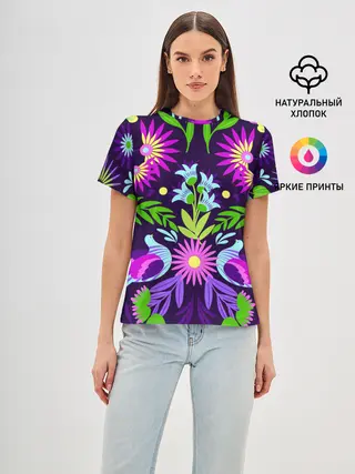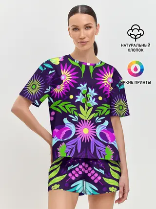 Женская футболка оверсайз / Ночные цветы