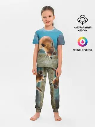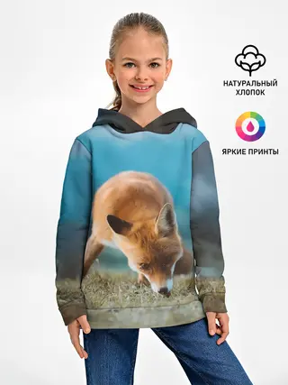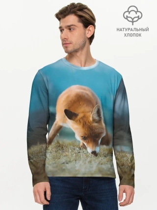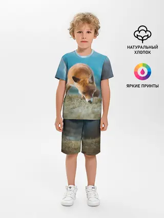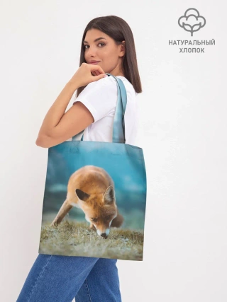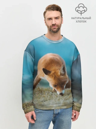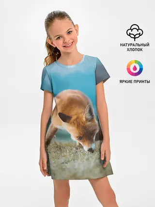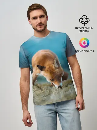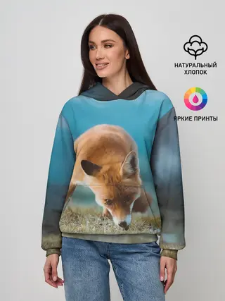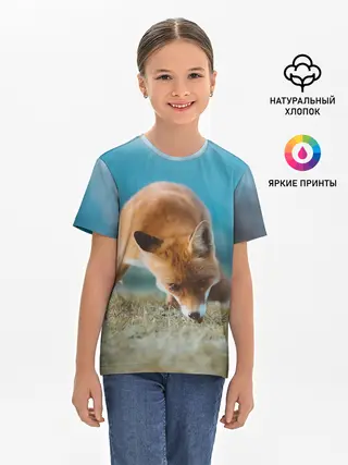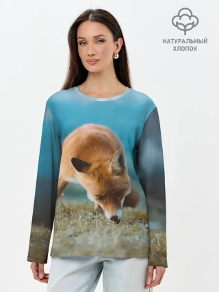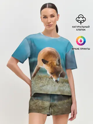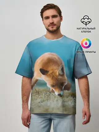 Женская футболка оверсайз / Лисенок нюхает цветок