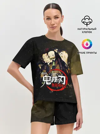 Женская пижама с шортами / Танджиро и Незуко Kimetsu no Yaiba