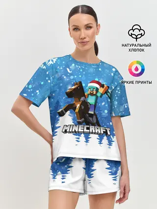 Женская пижама с шортами / Новогодний Манкрафт на коне