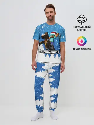 Мужская пижама с брюками / Новогодний Манкрафт на коне