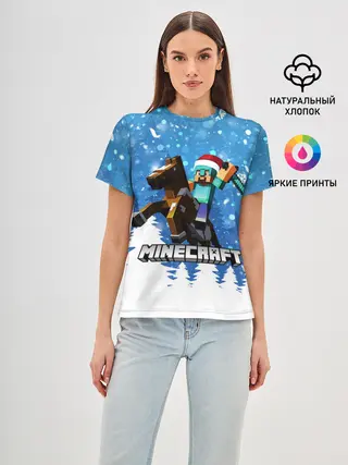 Женская базовая футболка / Новогодний Манкрафт на коне