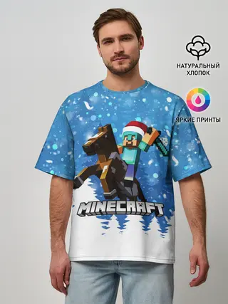 Мужская футболка оверсайз / Новогодний Манкрафт на коне