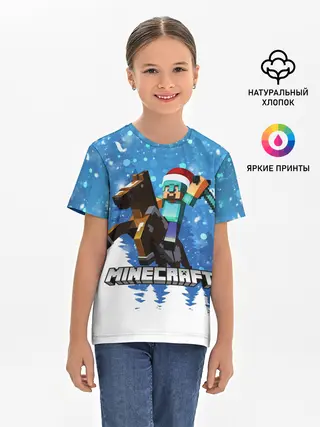 Детская базовая футболка / Новогодний Манкрафт на коне
