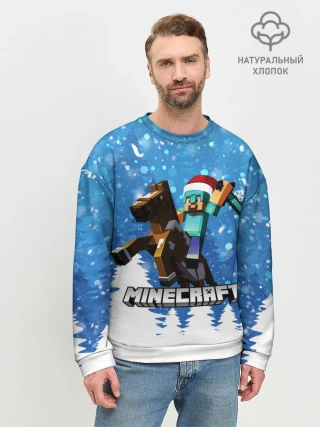 Мужской свитшот базовый / Новогодний Манкрафт на коне