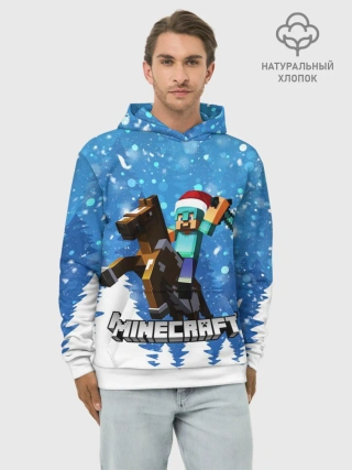 Худи мужской база хлопок / Новогодний Манкрафт на коне
