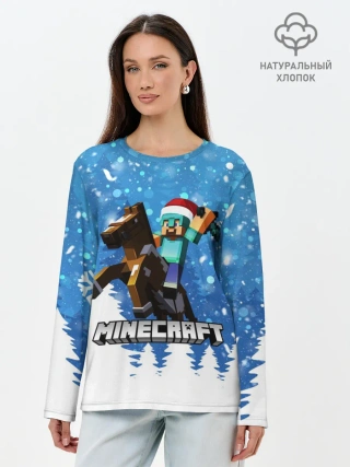 Лонгслив женский. Хлопок / Новогодний Манкрафт на коне