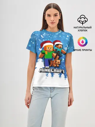 Женская базовая футболка / Новогодний Манкрафт