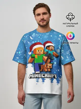 Мужская футболка оверсайз / Новогодний Манкрафт