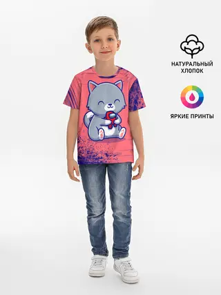 Детская базовая футболка / AMONG US - С КОТИКОМ