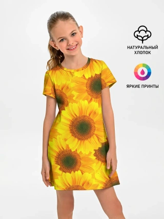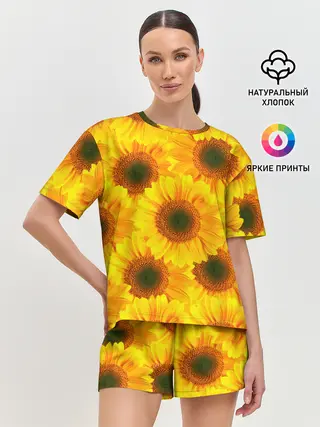 Женская футболка оверсайз / Принт подсолнухи желтый
