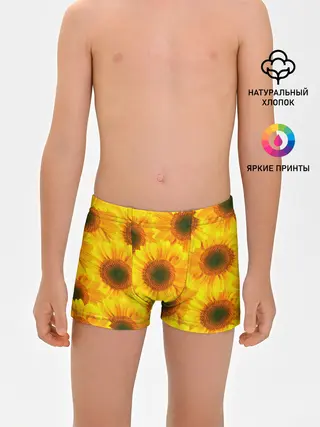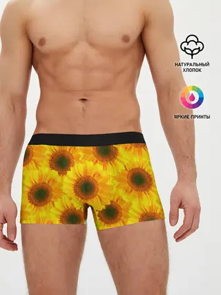 Мужские трусы боксеры / Принт подсолнухи желтый