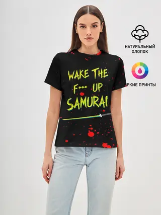 Женская футболка оверсайз / WAKE THE F*** UP SAMURAI