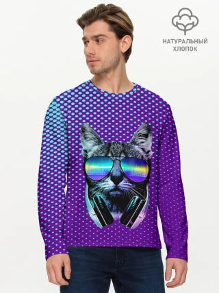 Мужской лонгслив базовый / Кот очки наушники модный