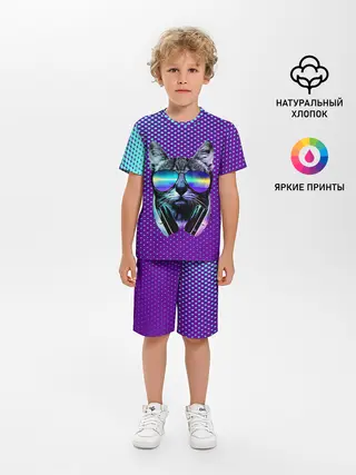 Детская пижама с шортами / Кот очки наушники модный