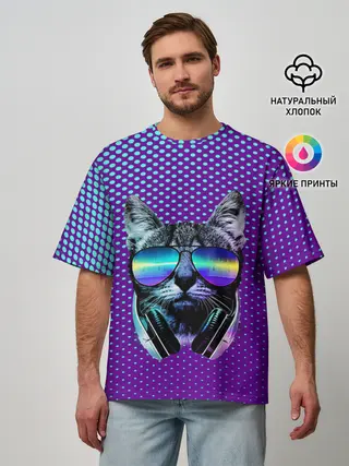 Мужская футболка оверсайз / Кот очки наушники модный