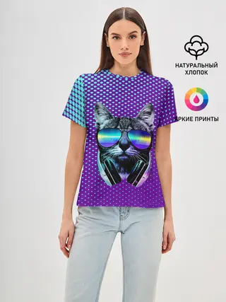 Женская базовая футболка / Кот очки наушники модный