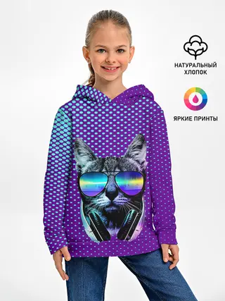 Детское худи / Кот очки наушники модный