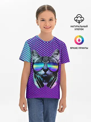 Детская базовая футболка / Кот очки наушники модный