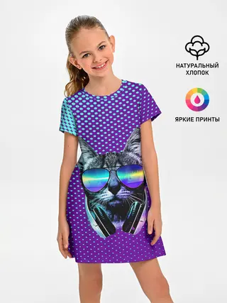 Детское платье / Кот очки наушники модный