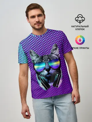 Мужская базовая футболка / Кот очки наушники модный