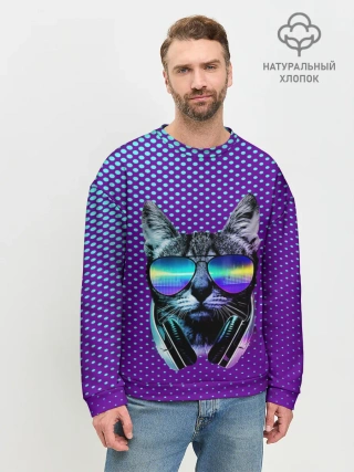 Мужской свитшот базовый / Кот очки наушники модный