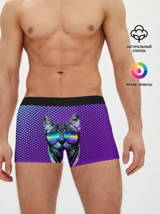 Мужские трусы боксеры / Кот очки наушники модный