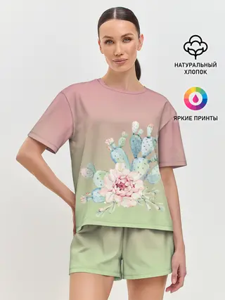 Женская пижама с шортами / суккулент градиент