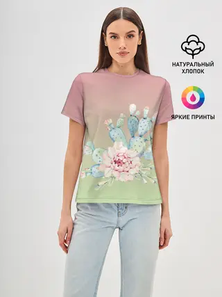 Женская базовая футболка / суккулент градиент