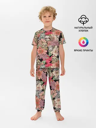 Детская пижама с шортами / Ленивец & Цветочки