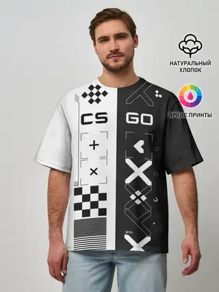 Женская футболка оверсайз / CS GO BLACK WHITE GEOMETRY