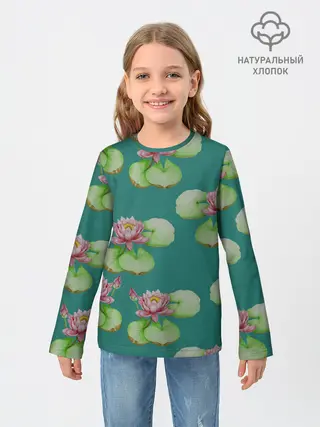 Детский лонгслив / Лотосы на темно бирюзовом фоне
