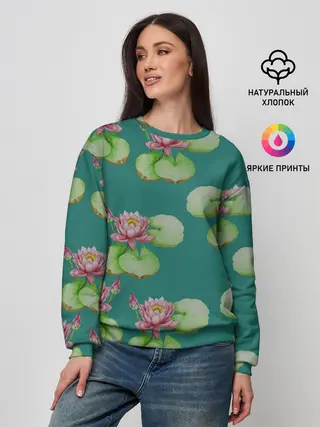 Женский свитшот / Лотосы на темно бирюзовом фоне