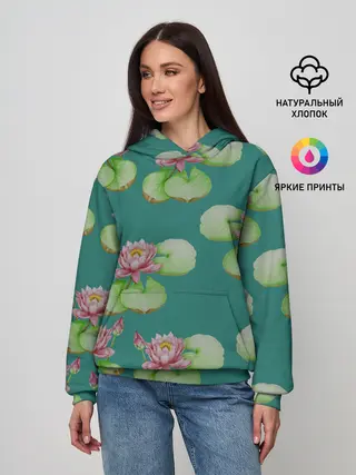 Женское худи / Лотосы на темно бирюзовом фоне