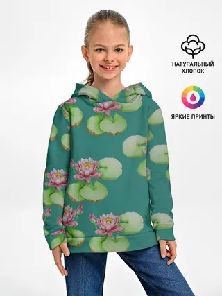 Детское худи / Лотосы на темно бирюзовом фоне