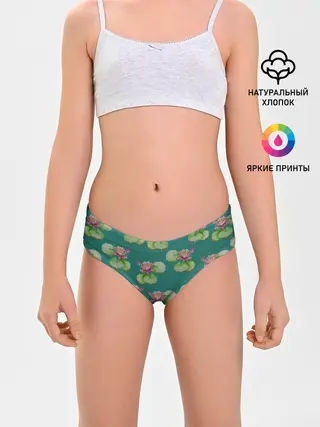 Трусы для девочек / Лотосы на темно бирюзовом фоне