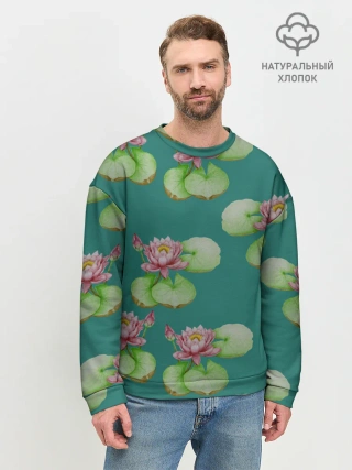 Мужской свитшот базовый / Лотосы на темно бирюзовом фоне
