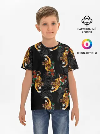 Детская базовая футболка / Японский стиль - тигры
