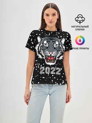 Женская базовая футболка / Черный водяной тигр 2022
