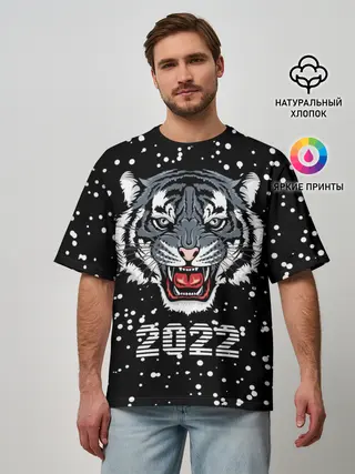 Мужская футболка оверсайз / Черный водяной тигр 2022