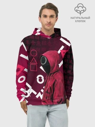 Худи мужской база хлопок / ИГРА В КАЛЬМА, УЗОР ИЕРОГЛИФЫ