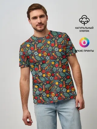 Мужская базовая футболка / Новогодняя Праздничная Символика