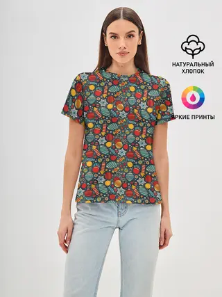 Женская базовая футболка / Новогодняя Праздничная Символика
