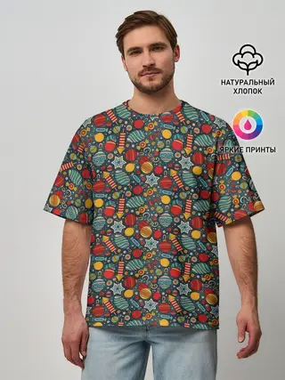 Мужская футболка оверсайз / Новогодняя Праздничная Символика