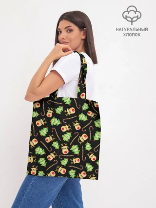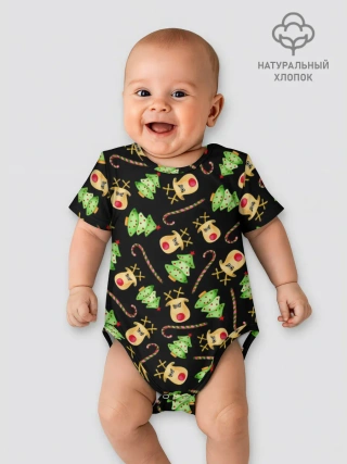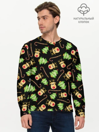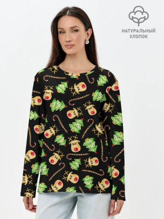 Лонгслив женский. Хлопок / Олени, елки и карамель