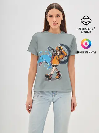 Женская базовая футболка / May whith dolphin