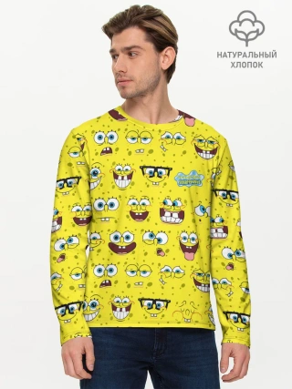 Мужской лонгслив базовый / Губка Боб паттерн