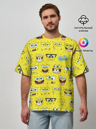 Мужская футболка оверсайз / Губка Боб паттерн