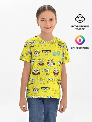 Детская базовая футболка / Губка Боб паттерн